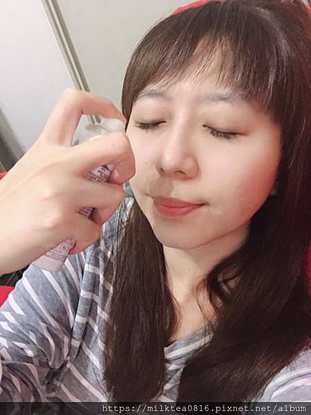奶茶基本上後來都帶去辦公室了,畢竟天天吹冷氣很乾,然後奶茶本身又是又乾又油的膚質,所以只要一想到就會拿起這瓶平衡滲透舒緩活泉水噴臉,就跟夏天要多喝水補充水份一樣,臉部肌膚也要補水才能美美的!覺得噴了之後臉部真的不容易狂出油,保濕感十足,真的是夏天上班族的救星!