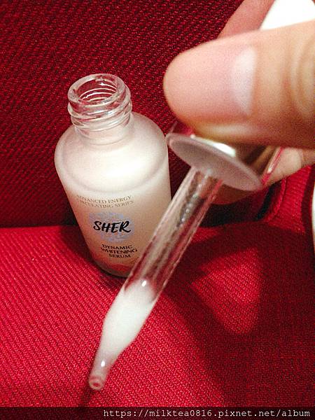 大家使用前記得先搖晃均勻再使用滴管取出,接著塗抹在臉上搭配按摩拉提。使用上奶茶覺得它的吸收度滿快的,而且居然不會太油膩,很喜歡聞起來很舒服的花香味,用了一周有感覺到臉上的一些暗沉真的有比較淡,連暴哥都想試試看拿它來淡斑了呢!因為它沒有添加色料、防腐劑,所以使用上也沒有不舒服,算是滿滿少女心可愛又用起來安心地提亮呢!