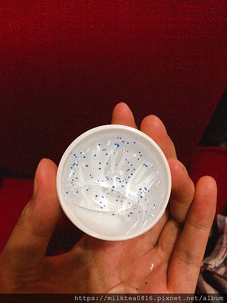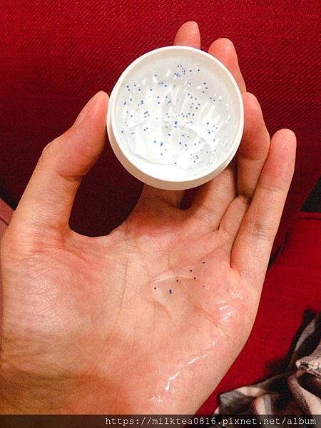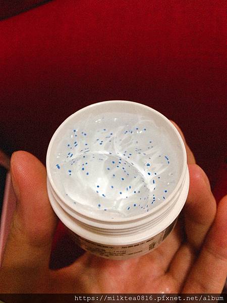 使用後奶茶是真的滿喜歡這個凍膜凍狀的觸感,水水的抹在肌膚上冰冰涼涼很舒適,而且抹上去之後不需要特別洗掉,好適合奶茶這個大懶人哈哈!隔天起床之後感覺到臉還滿清爽的,不會呈現出油或是黏膩感,感覺得到保濕感滿強的,還滿喜歡這款凍膜的!