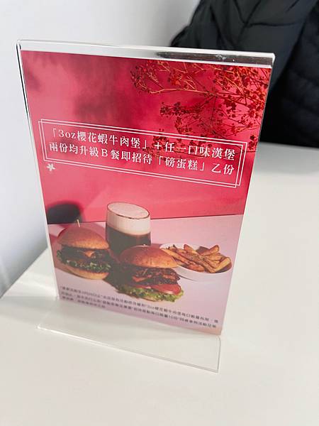 暴哥點了「黑松露牛肉堡」250元,奶茶我則是點了「草莓乳酪牛肉堡」210元,都加了70元升級套餐,炸物選了「炸雞球」、「起司條」,飲料暴哥選了「莓果奶昔」,我選了「莓果風味鮮奶茶」。