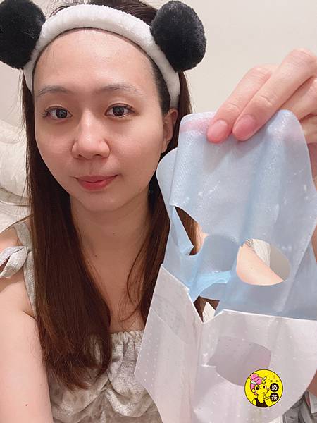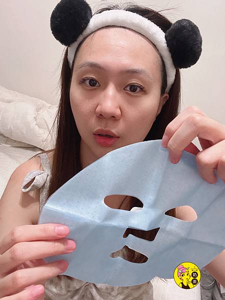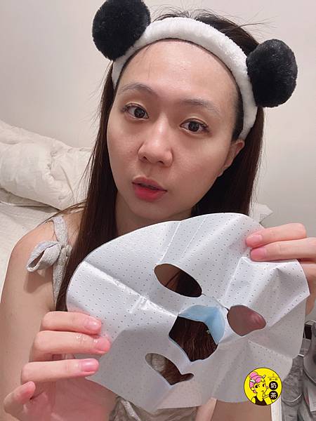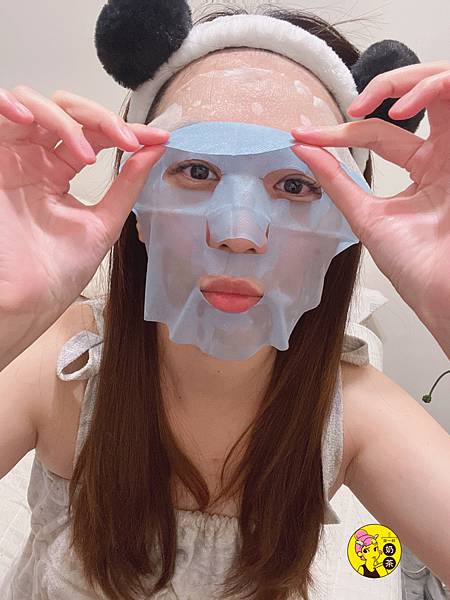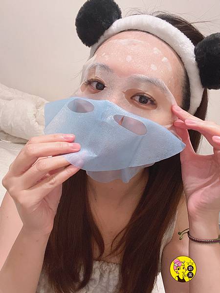 6.面膜敷在臉上後再將外層藍色PP布移除
